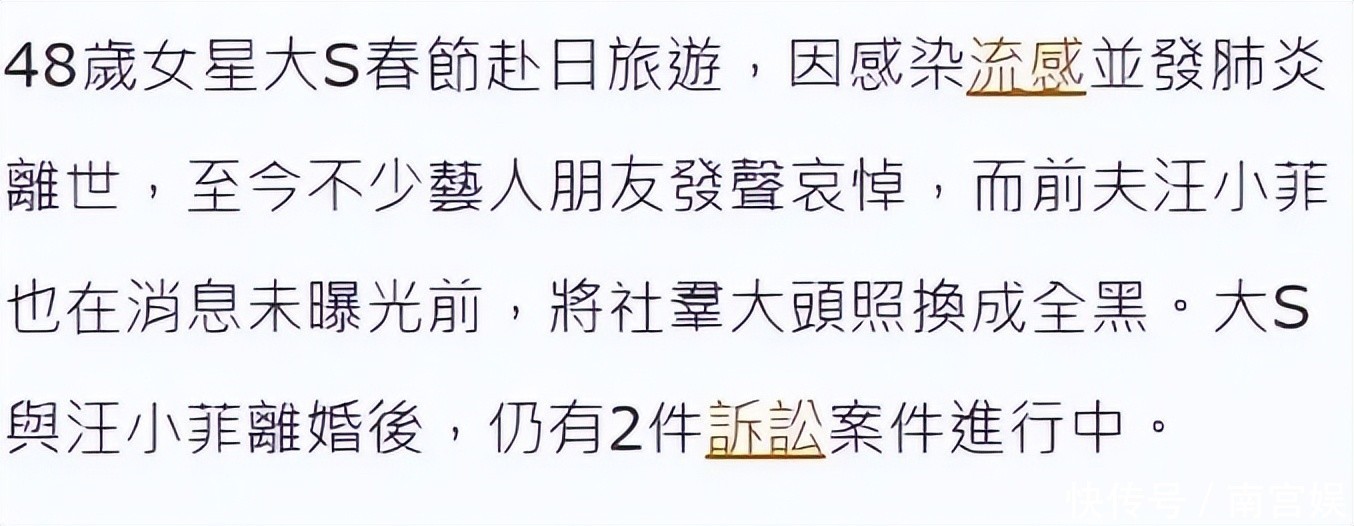 但大S虽然已经过时,却留下了2个官司要打,这两个官司的对方无疑都是汪小菲。